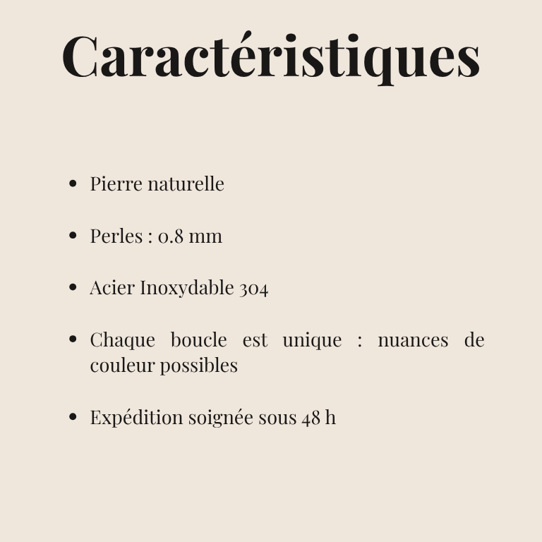Ces boucles en améthyste naturelle révèlent une teinte violette douce et lumineuse, symbole de sérénité et de clarté d’esprit. Élégantes et apaisantes, elles illuminent le visage d’une touche raffinée et intemporelle.