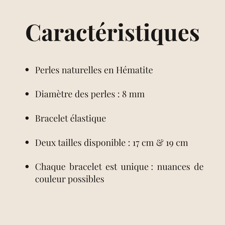 Un bijou sobre et raffiné, qui reflète la force intérieure et la stabilité de l’Hématite.