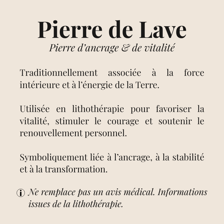 Symbole de maîtrise de soi et de lâcher-prise, elle se marie à la puissance de la lave pour offrir harmonie et calme intérieur.