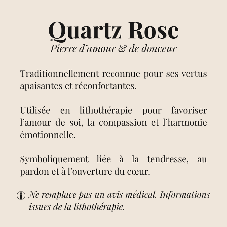 Traditionnellement associé à l’amour universel, il favorise l’harmonie émotionnelle, l’ouverture du cœur et l’apaisement intérieur.