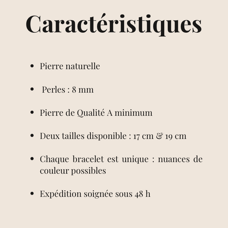 Ce bracelet favorise la concentration tout en apportant une touche lumineuse et naturelle à votre poignet.