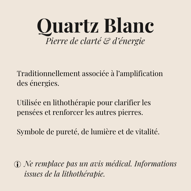 Pierre de clarté et d’équilibre, le cristal de roche aide à apaiser le mental et à harmoniser les énergies.