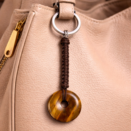 Un talisman protecteur en œil de tigre, pierre de force et de confiance, associé à un tissage en macramé de coton ciré.